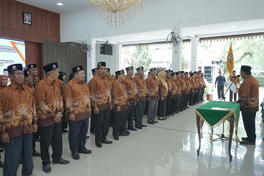 ASAHAN- Berdasarkan Surat Keputusan PWRI Nomor 01/S/D25/KPTS-PWRI-KAB.ASAHAN/XII/2024 tentang Pengesahan Susunan Pengurus Wredatama Republik Indonesia (PWRI) pada 25 Kecamatan Se-Kabupaten Asahan Periode 2024-2029, Ketua PWRI Kabupaten Asahan yang diwakili oleh Ketua Harian PWRI Kabupaten Asahan H. Humaidi Syamsuri Pane melantik 25 pengurus PWRI Kecamatan se-Kabupaten Asahan. Pelantikan ini dilaksanakan di Pendopo Rumah Dinas Bupati Asahan yang dihadiri oleh Kepala BKPSDM Kabupaten Asahah, PWRI Kabupaten Asahan, PWRI Sumatera Utara, PWRI Kota Tangah Padang dan Pengurus PWRI Kecamatan se-Kabupaten Asahan.