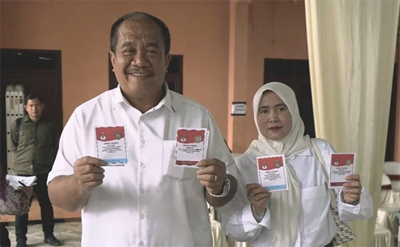 ASAHAN- Wakil Bupati Asahan Taufik Zainal Abidin Siregar S.Sos M.Si bersama Istri Yusnila Indriati memberikan hak suaranya pada Pilkada Serentak di TPS 10 Kelurahan Selawan Kecamatan Kota Kisaran Timur, Rabu (27/11/2024). Setelah memberikan hak suaranya pada Pilkada Serentak Tahun 2024 pemilihan calon Gubernur dan Wakil Gubernur Sumatera Utara, Bupati dan Wakil Bupati Asahan, Taufik melanjutkan kegiatannya dengan memantau jalannya proses pemungutan suara di TPS tersebut.